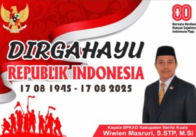 Pimpinan dan Seluruh Staf BPKAD Kabupaten Barito Kuala Mengucapkan Selamat Dirgahayu Republik Indonesia Ke 80 08 Agustus 2025, 04:21 am Selamat Hari Kemerdekaan Republik Indonesia Ke 80 Tahun pada 17 Agustus 2025! Semoga Indonesia selalu…