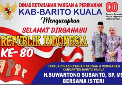 KEPALA DINAS KETAHANAN PANGAN & PERIKANAN KAB-BARITO KUALA BESERTA ISTRI & SELURUH STAF MENGUCAPKAN SELAMAT DIRGAHAYU REPUBLIK INDONESIA KE-80