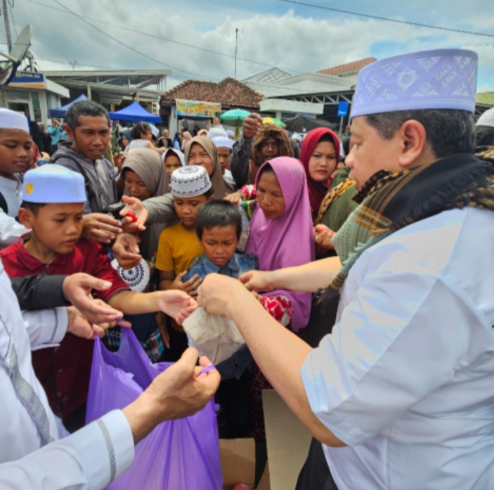Berbaur dengan Jamaah Haul Guru Sekumpul, Kakanwil Kemenag Kalsel ikut bagikan Nasi Bungkus, Air Mineral dan Roti kepada Jamaah.