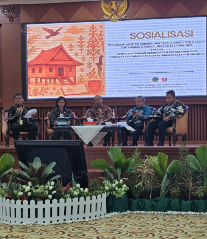 Banjarbaru, detikposkalimantan.com – Direktorat Pengaturan Tanah Pemerintah, Tanah Ulayat, dan Tanah Komunal Kementerian Agraria dan Tata Ruang/Badan Pertanahan Nasional (ATR/BPN) menyelenggarakan sosialisasi tentang pengakuan dan perlindungan masyarakat hukum adat sebagaimana diatur dalam Permendagri No 52 Tahun 2014 serta pencatatan dan Pengadministrasian Hak Ulayat Masyarakat Hukum Adat sebagaimana diatur dalam Permen ATR/BPN No 4 Tahun 2024.