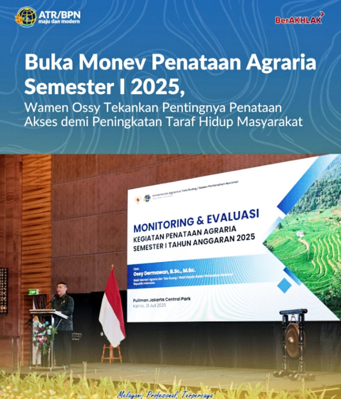 Buka Monev Penataan Agraria Semester I 2025, Wamen Ossy Tekankan Pentingnya Penataan Akses demi Peningkatan Taraf Hidup Masyarakat