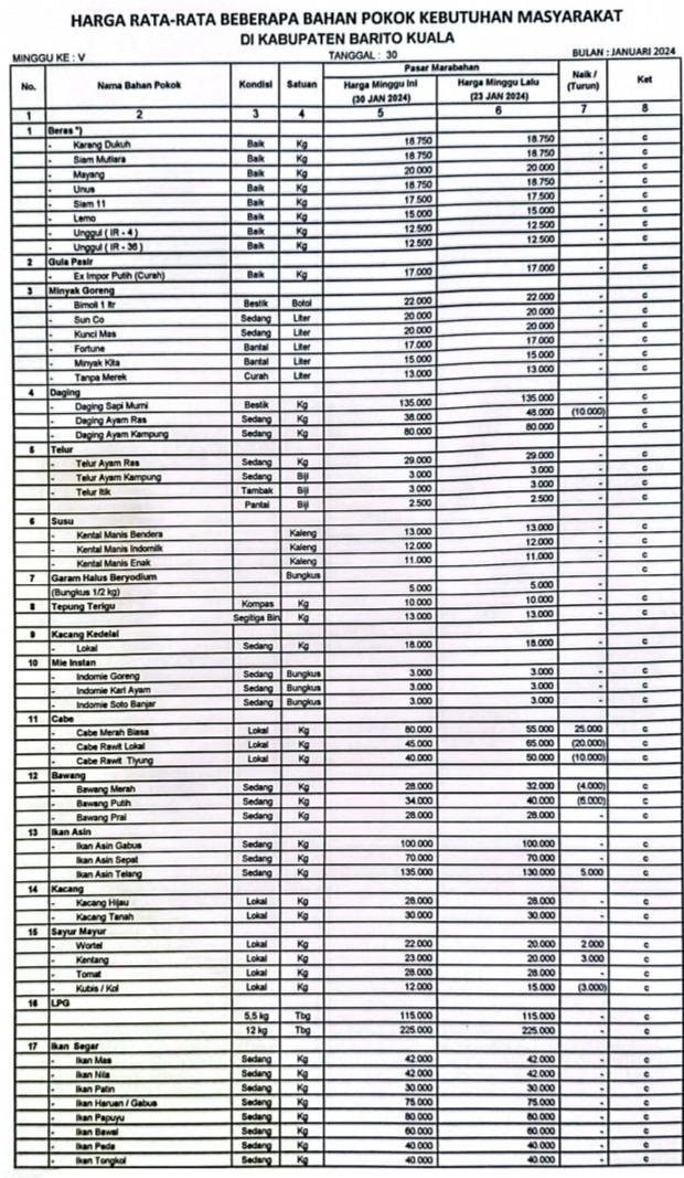 Daftar Harga Bapok 30 Januari 2024 di Batola