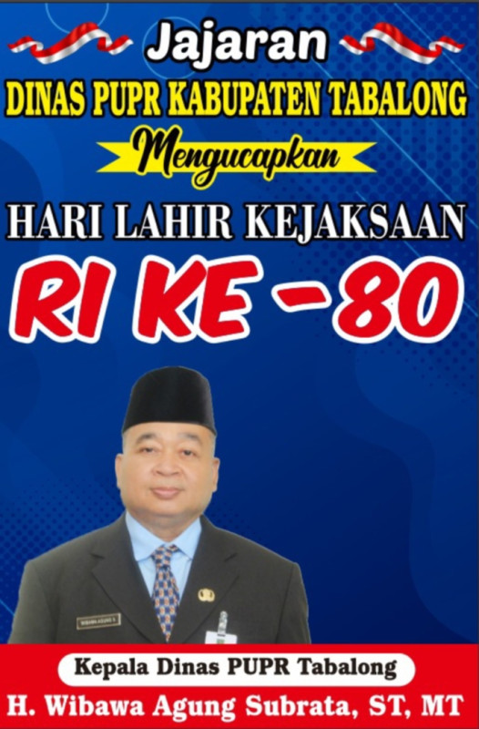 Jajaran Dinas PUPR Kabupaten Tabalong Mengucapkan Selamat Hari Lahir Kejaksaan RI 2025 yang ke-80 tahun! detikpo1 | 02 September 2025, 09:21 am | 0 comments | 694 views “Mari jangan berhenti bertransformasi lebih baik untuk Indonesia Maju’” Teruslah berjuang bagi hukum Indonesia yang lebih bersih dan berkeadilan. “Bentuk selalu Kejaksaan yang kuat, karenanya sebagai pilar negara hukum”
