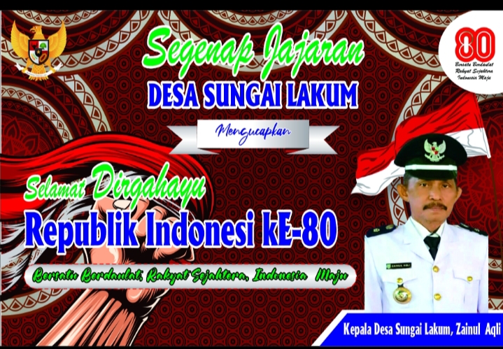 KADES SUNGAI LAKUM, ZAINUL AQLI BERSAMA APARAT DESA MENGUCAPKAN SELAMAT DIRGAHAYU REPUBLIK INDONESIA KE 80 TAHUN
