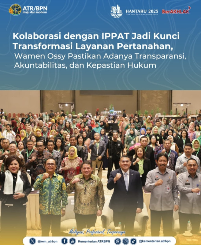 Kolaborasi dengan IPPAT Jadi Kunci Transformasi Layanan Pertanahan, Wamen Ossy Pastikan Adanya Transparansi, Akuntabilitas, dan Kepastian Hukum