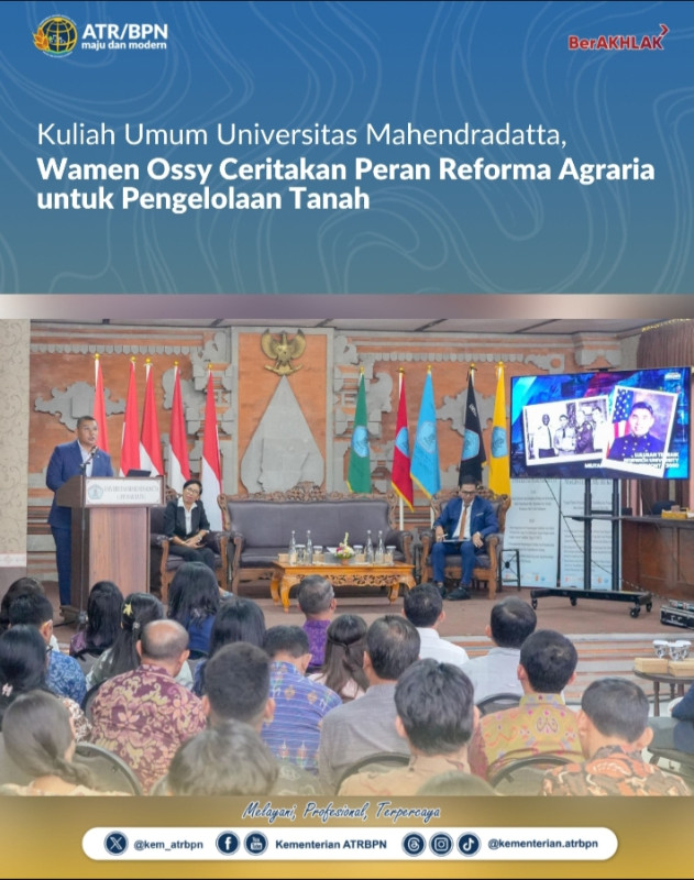 Kuliah Umum Universitas Mahendradatta, Wamen Ossy Ceritakan Peran Reforma Agraria untuk Pengelolaan Tanah