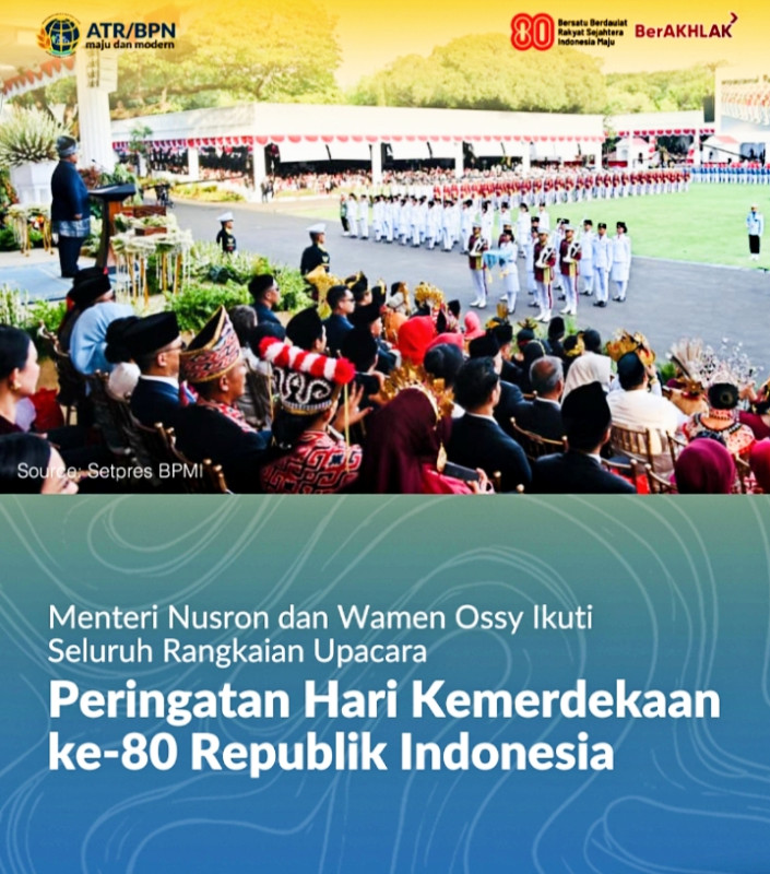 Menteri Nusron dan Wamen Ossy Ikuti Seluruh Rangkaian Upacara Peringatan Hari Kemerdekaan ke-80 Republik Indonesia