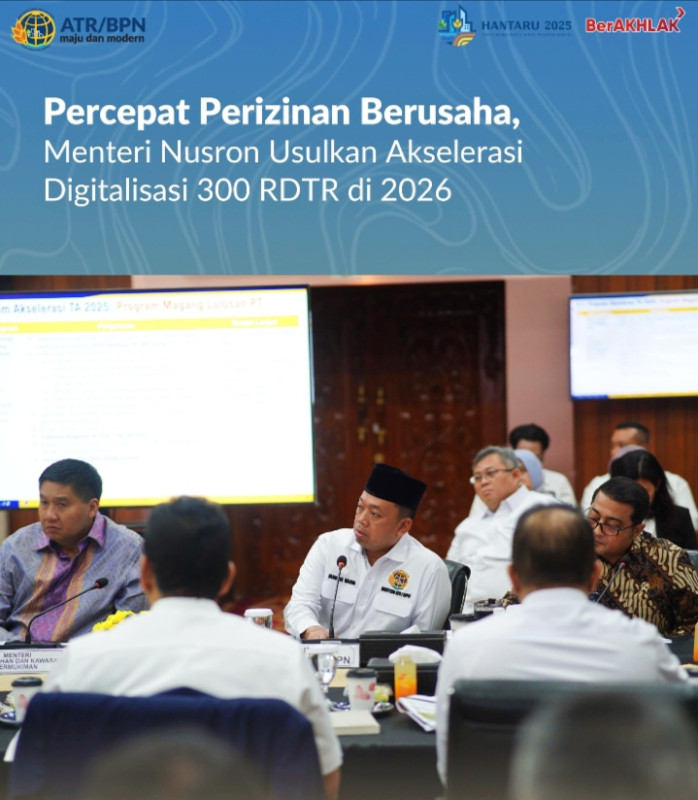 Percepat Perizinan Berusaha, Menteri Nusron Usulkan Akselerasi Digitalisasi 300 RDTR di 2026