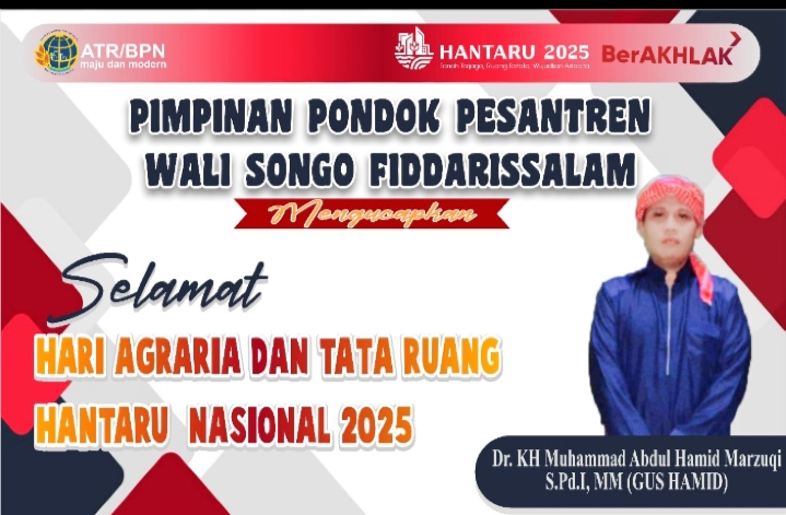 PIMPINAN PONDOK PESANTREN WALI SONGO FIDDARISSALAM, Dr. KH MUHAMMAD ABDUL HAMID MARZUQI, S.PD.I, MM, (GUS HAMID) MENGUCAPKAN SELAMAT HARI AGRARIA DAN TATA RUANG (HANTARU) NASIONAL 2025