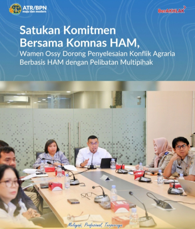 “Permasalahan pertanahan tidak bisa hanya ditangani Kementerian ATR/BPN sendiri, tetapi memerlukan kolaborasi lintas kementerian, lembaga, pemerintah daerah, hingga aparat penegak hukum. Karena itu, kami sangat terbuka dan menyambut baik inisiatif Komnas HAM untuk bersama-sama menyusun peta jalan penyelesaian konflik agraria berbasis HAM,” ujar Wamen Ossy.