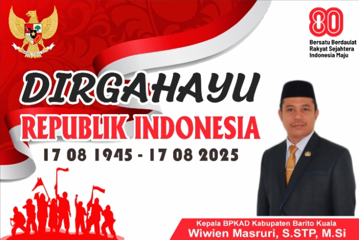 Pimpinan dan Seluruh Staf BPKAD Kabupaten Barito Kuala Mengucapkan Selamat Dirgahayu Republik Indonesia Ke 80
