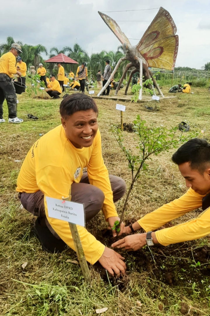 Sekwan DPRD Batola, Haris Isroyani saat mengikuti penanaman sejuta pohon.(ist)
