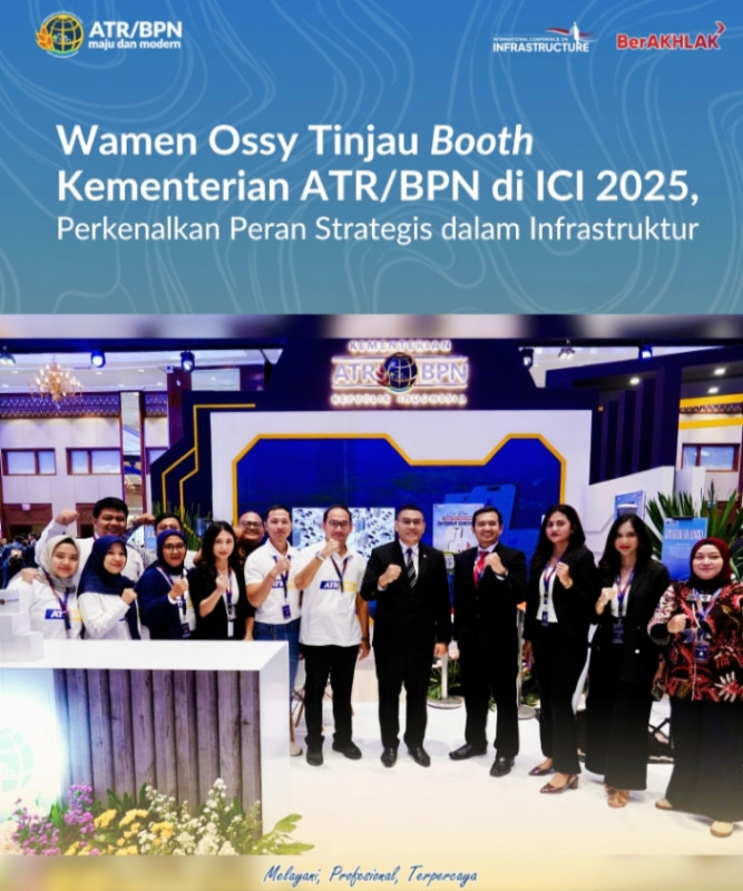 Jakarta, detikposkalimantan.com – Wakil Menteri Agraria dan Tata Ruang/Wakil Kepala Badan Pertanahan Nasional (Wamen ATR/Waka BPN), Ossy Dermawan, meninjau langsung ke _booth_ Kementerian ATR/BPN pada hari pertama International Conference on Infrastructure (ICI) 2025, di Jakarta International Convention Center (JICC), Rabu (11/06/2025). Baginya, partisipasi Kementerian ATR/BPN dalam konferensi internasional ini bukan hanya bentuk dukungan terhadap pembangunan infrastruktur, namun juga sebagai sarana edukatif dan informatif bagi peserta yang hadir.